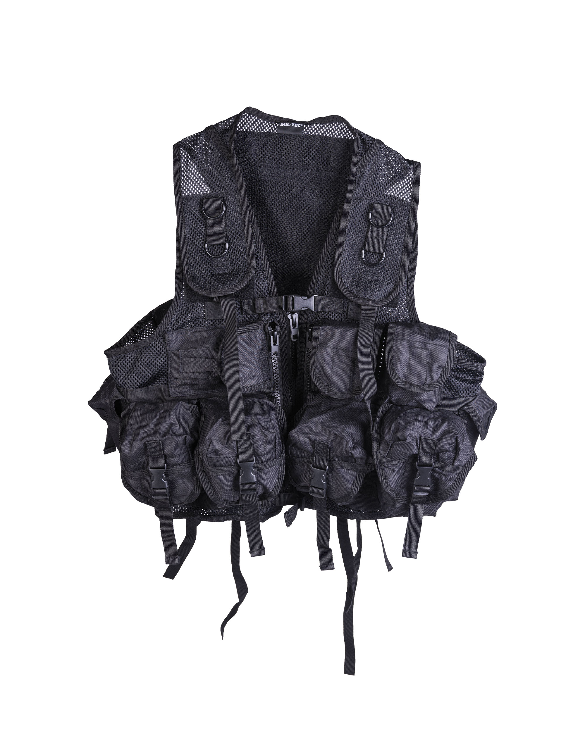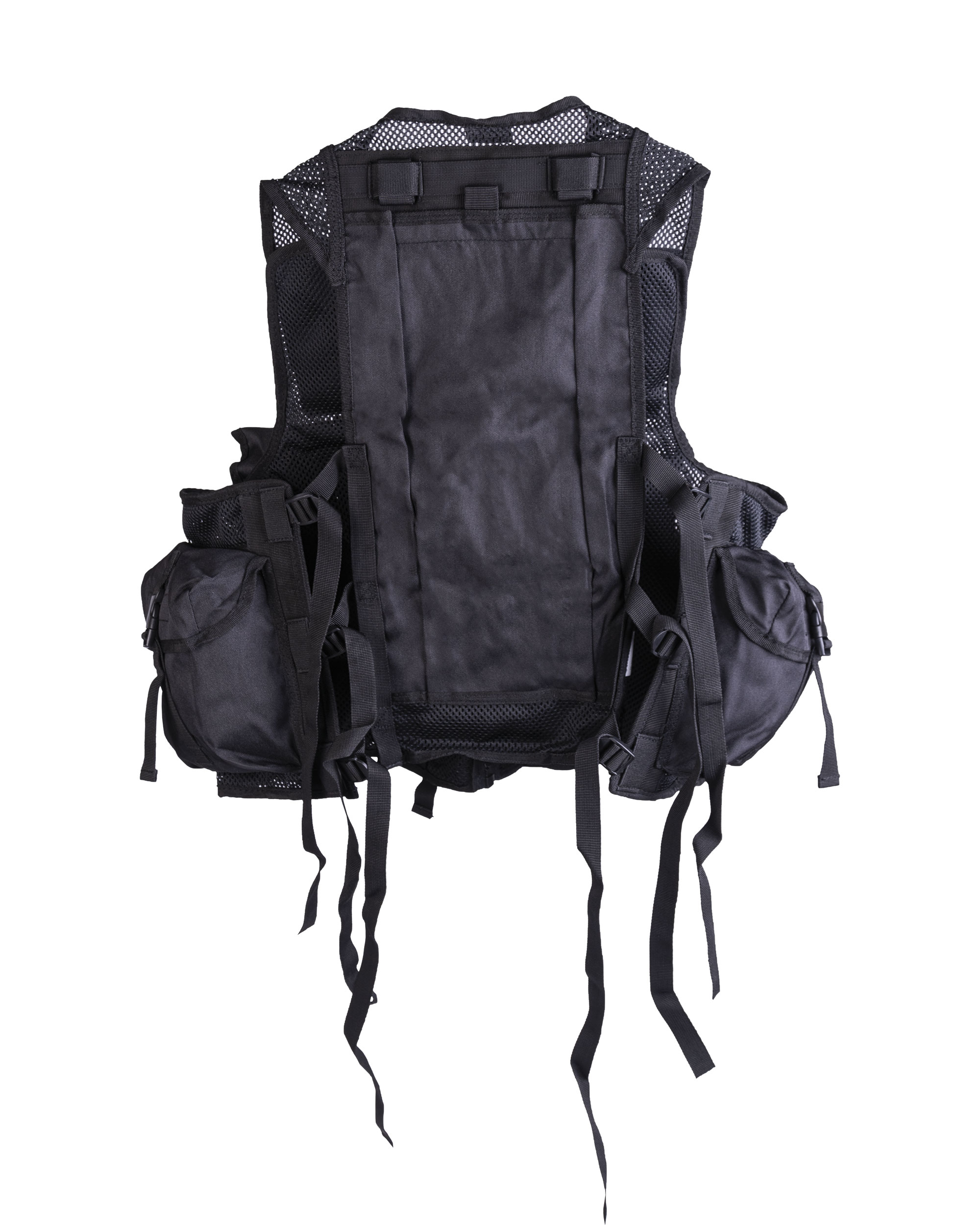 – tactical vest made of netting with 9 pockets and a big back pocket with hook and loop closure